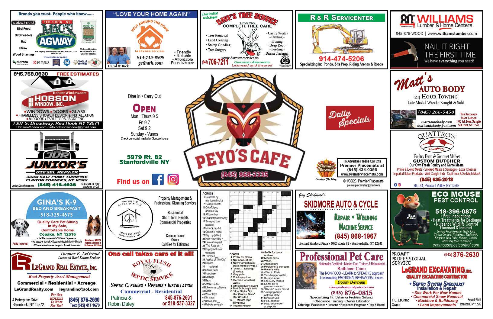 Stanfordville combo mat (3 brothers , Val's pizza and Peyo's Cafe)
